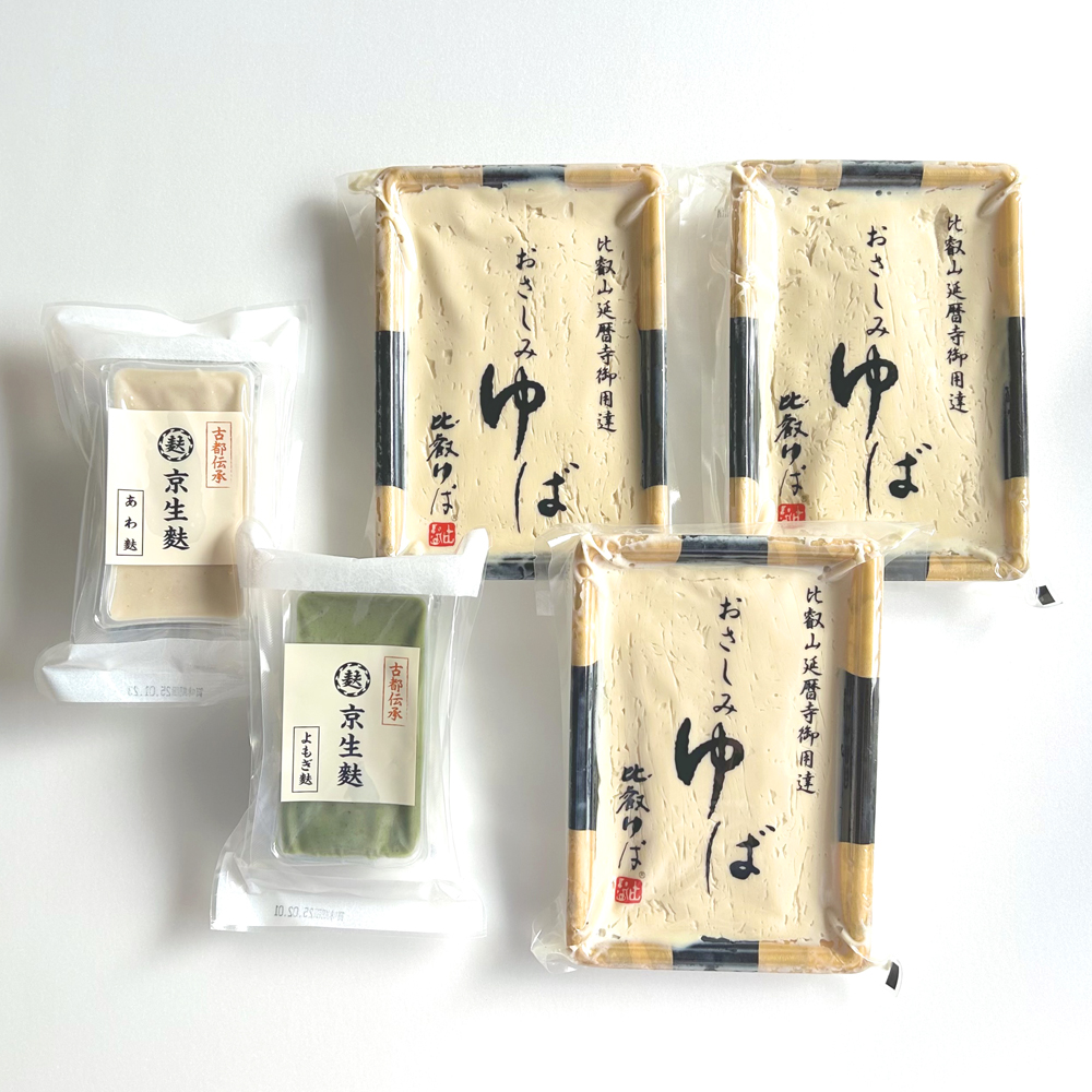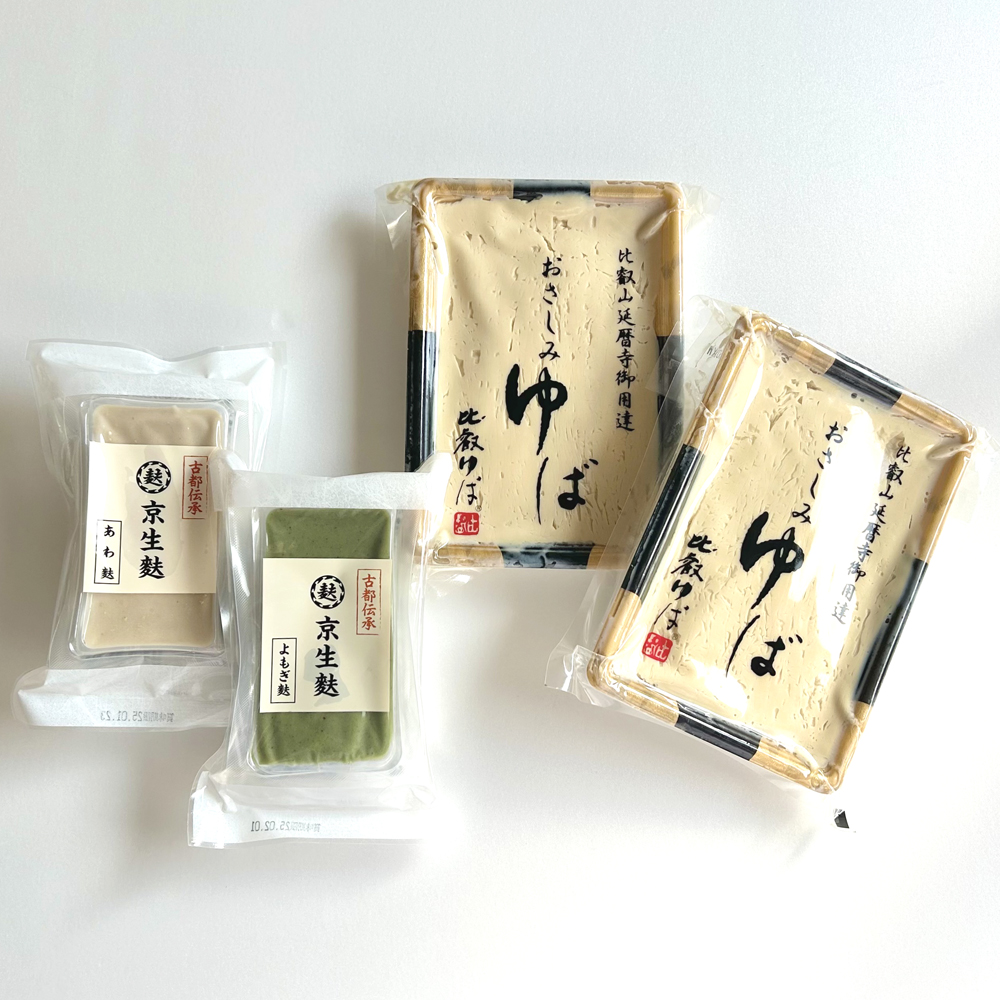 当店でしか手に入らない「限定商品おさしみゆば」と生麩2種の詰合せ。