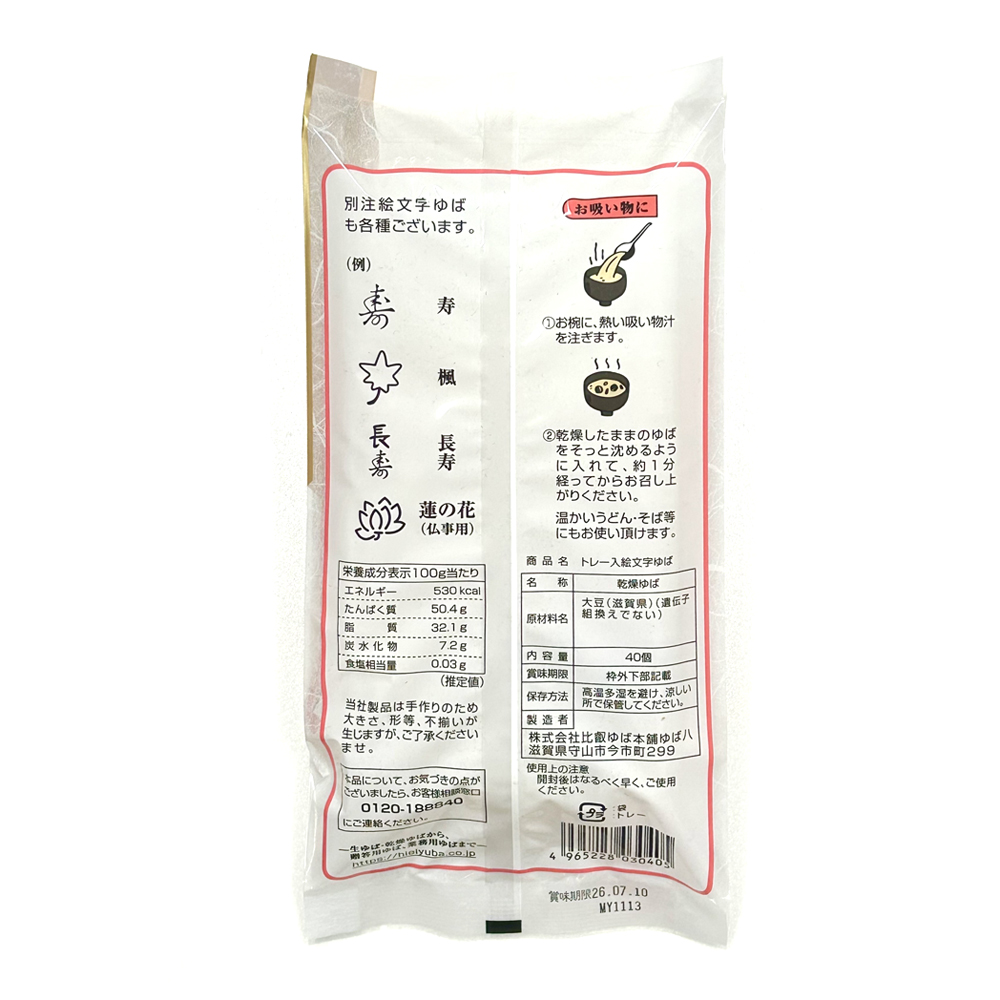 【商品名】トレー入り 絵文字ゆば 「寿」(40個入)